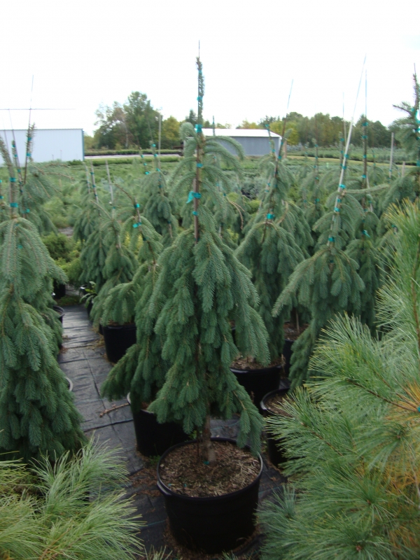 Ель сизая Pendula - дерево со свисающими, достаточно жесткими ветвями, образующими эффект каскада. Ствол густо покрыт ветвями. Нижние ветви низко расположены, практически лежат на земле, плакучие. Хвоя густо расположена на ветвях, голубовато-зеленая. Скорость роста средняя. В возрасте 30 лет растение достигает 15 м в высоту.