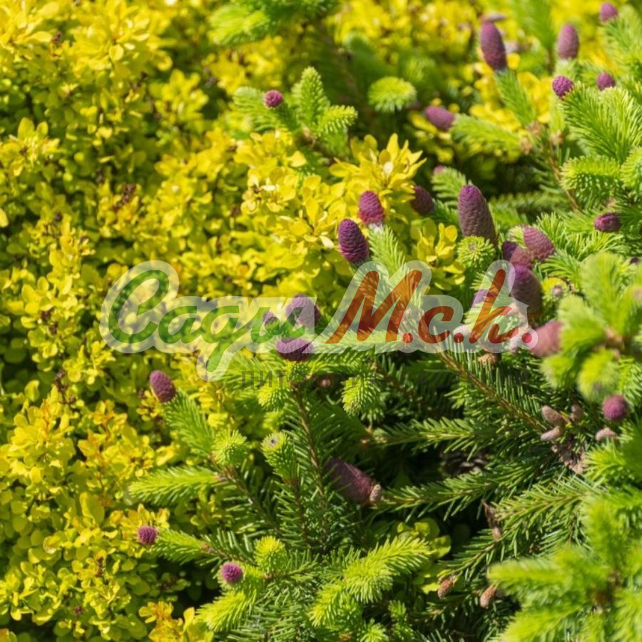 Ель шаровидной формы. Крона плотная компактная, к 10-ти годам диаметр кроны около 30 см. Годовой прирост 2-3 см. В штамбовой форме высота зависит от места прививки. Хвоя серебристо-голубая. Место солнечное. Почва умеренно влажная, дренированная. Зона 3 (до -34ºС). Отличный сорт для небольших приусадебных участков, альпинариев, для выращивания в контейнерах.