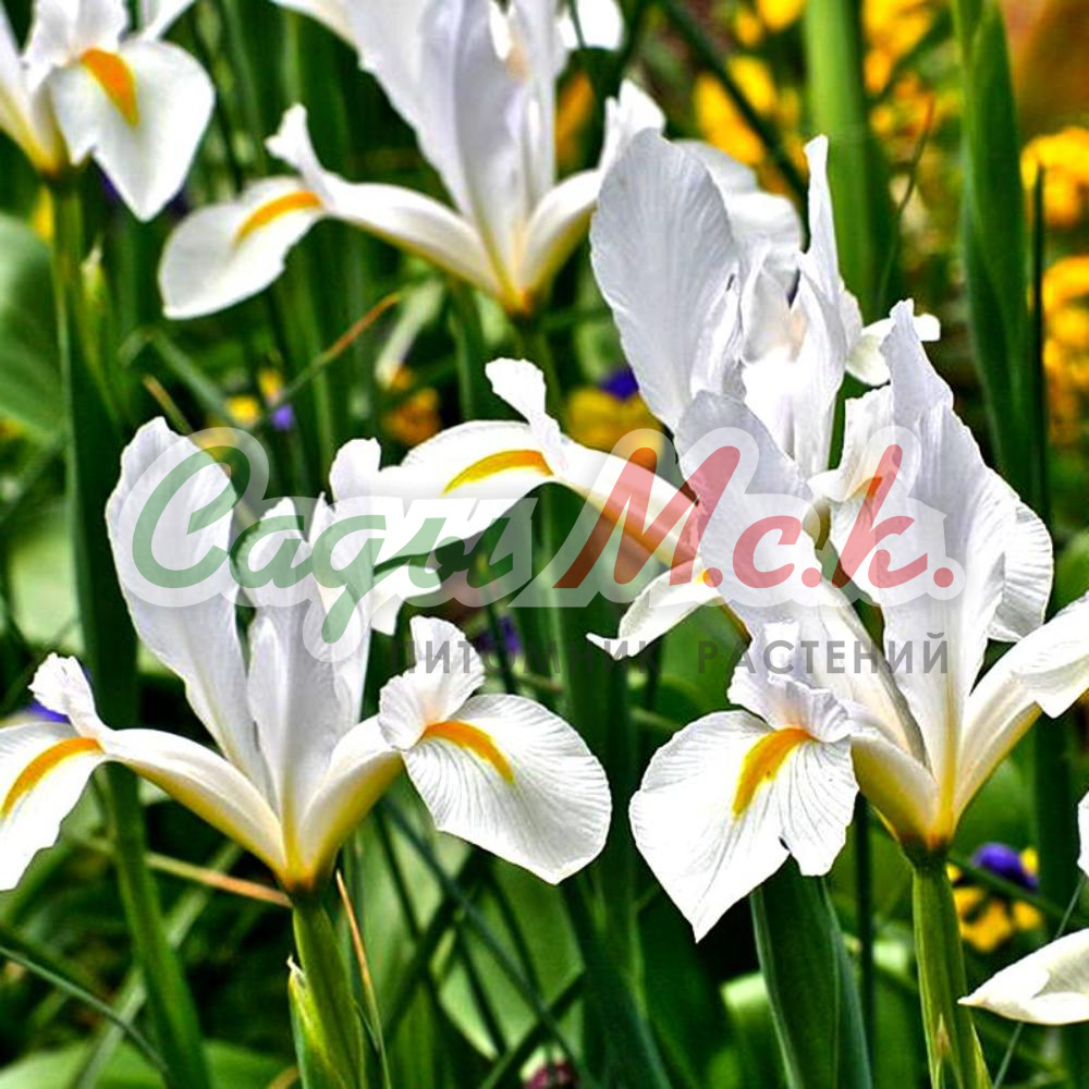 Рассада ириса Acoma относится к высоким бородатым ирисам, известным как пликата, т.е. в которых яркий рисунок располагается на более светлом фоне. Это однократно цветущий ирис, на каждом стебле которого развивается от 5 до 6 бутонов. Нижние доли (фолы) имеют светлый фон цвета слоновой кости и фиолетовые края, мягко переходящие друг в друга. Верхние доли (стандарты) – светло-светло-голубые, вертикально подняты вверх. Бородка – желтая, малозаметная. Верхние и нижние доли слегка гофрированные. Цветение среднее.