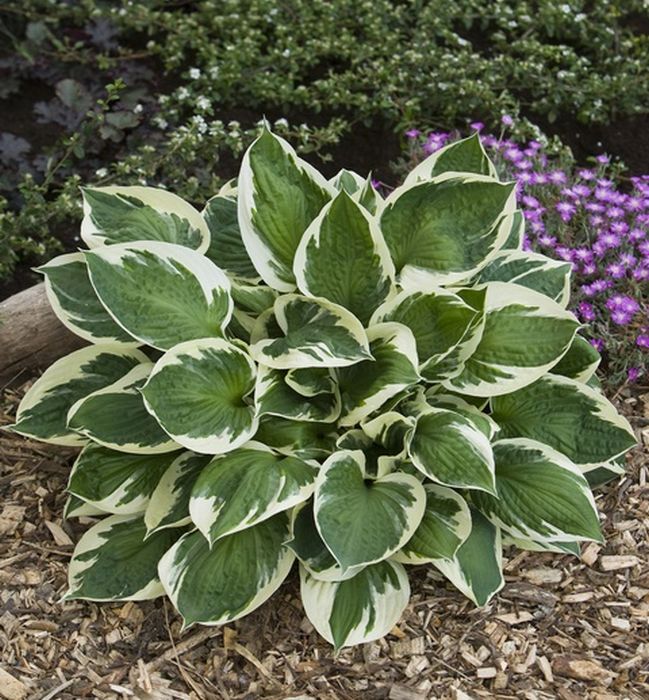 Хоста гибридная Карин представляет собой кустарник около 40 см в высоту и 65 см в ширину. Листва его темно-зеленого оттенка с большим белым окаймлением. Во время цветения появляются небольшие фиолетовые цветки. Располагать данный сорт лучше в полутени. На одном месте она растет до 20 лет, не требуя пересадки. Почву следует подбирать подкисленную и с хорошим увлажнением. Растение нормально переносит морозы и ему не потребуется дополнительного укрытия. Хоста гибридная Карин эффектно будет смотреться даже в одиночных посадках, а также при оформлении рабаток или бордюров. Растение отлично дополнит искусственные водоемы на участке.