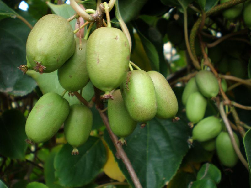 Актинидия Клара Цеткин - этот прекрасный крупноплодный сорт получен путем непрерывной селекции на крупноплодность из четвертой генерации актинидии коломикта. Форма плода - от продолговатой до эллипсоидной формы, иногда неравнобокая. Окраска - светлозеленая, с беловато-зеленоватыми продольными полосками. Окраска ровная по всей поверхности ягоды. Величина - высота 34 мм, ширина 14 мм, вес 3,8 г. Ножка - длиной в 17 мм, тонкая, коричневой окраски с засохшими темнокоричневыми чашелистиками. Цветовая чашечка - маленькая, с небольшим количеством полузасохших бурых пестиков, помещается в очень мелком правильном углублении.