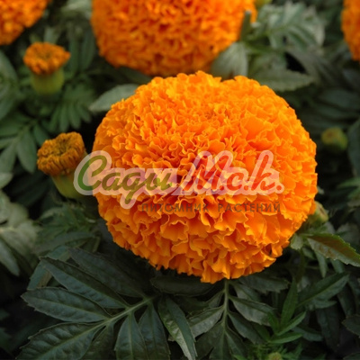 Однолетнее растение семейства Сложноцветные. Стебли прямостоячие, 25-30 см высотой, сильно ветвистые от основания, боковые побеги отклоненные. Соцветия махровые, красно-коричневые с золотисто-желтыми пятнами. В открытый грунт можно высевать в конце мая — начале июня. Всходы появляются на 5-10 день. Почву желательно накрыть нетканым материалом (акрил, лутрасил). В этом случае сеять можно на неделю-полторы раньше обычных сроков и тем самым ускорить цветение. На рассаду сеют в начале апреля. Цветение начнется в июне. Бархатцы, высаженные рядом с огородными культурами уменьшают их поражение грибными заболеваниями, особенно фузариозом, защищают от некоторых видов нематод. Бархатцы используют во всех видах цветников. Они хорошо растут в горшках, вазонах, балконных ящиках, в сочетании с примулами и цинерариями. Осенью цветущие растения можно перенести в комнату, где они прекрасно растут в течение всей зимы, а весной, высаженные в открытый грунт, образуют большой цветущий куст.