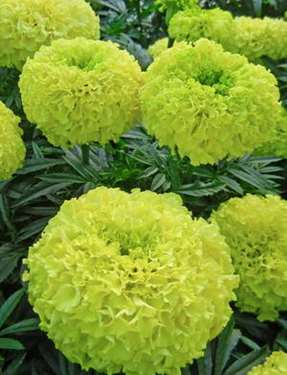 Бархатцы Ацтек Лайм-Грин F1 – уникальный и столь необычный образ всем нам знакомых цветов! Яркие сочные соцветия в оттенке лайма готовы скрасить любые цветники, состоящие из одних бархатцев, а также других самых разных культур. Они будут идеальны в миксбордерах, причём даже если у вас уже есть полностью сформированный миксбордер, куда вы не планировали ничего высаживать. Зелёные цветы бархатцев не нарушат общего фона композиции, не будут агрессивно конкурировать с растениями вокруг, зато смогут сделать посадки более плотными, что всегда смотрится очень роскошно. Одним словом, вы просто не можете обойтись без данного новомодного растения!
