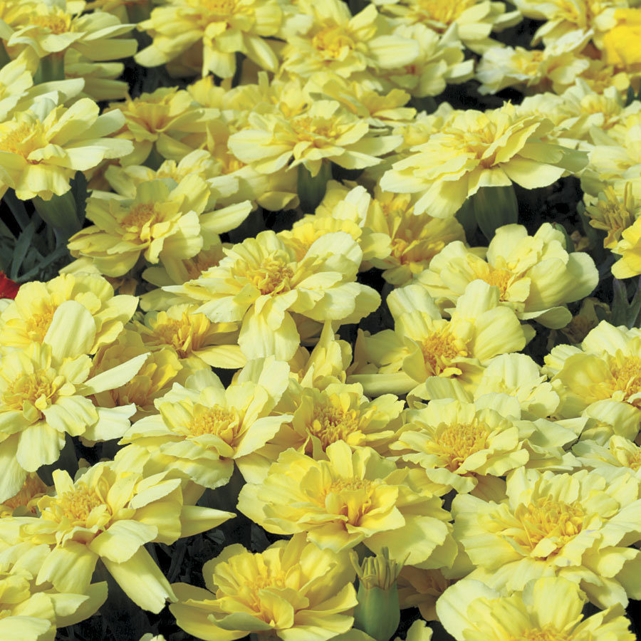 Уникальный сорт отклоненных бархатцев Алюмия Ванильный с необычайно красивыми соцветиями нежного ванильного оттенка. Растения компактные, высотой 25-30 см, густоветвящиеся, цветут рано и продолжительно – с июня по сентябрь. Бархатцы светолюбивы и теплолюбивы, засухоустойчивы. К почвам нетребовательны, но предпочитают плодородные легкие почвы. Выращивают, как правило, рассадным способом. В открытый грунт высаживают, когда минует угроза заморозков. Для хорошего роста необходим регулярный полив, подкормки минеральными удобрениями и прополки. Используются в декоративном озеленении для посадки на клумбах, в группах, на балконе, в контейнерах и горшках.