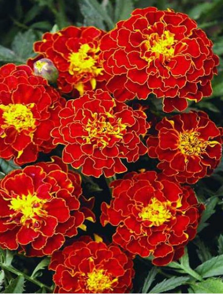 Яркая серия компактных бархатцев для украшения бордюров, рабаток, вазонов и балконных ящиков. Образует ветвистый кустик высотой 25 см. Соцветия диаметром 4-5 см, красно-коричневого цвета. Цветет с июня до заморозков. Бархатцы светолюбивы и теплолюбивы, заморозков не переносят, к почвам нетребовательны, но предпочитают плодородные легкие почвы. Посев на рассаду проводят во второй половине марте-начале апреля. Всходы появляются через 4-8 дней после посева, сеянцы пикируют в фазе 2-го настоящего листа. Рассаду высаживают в начале июня с расстоянием между растениями 30-35 см. Посев в открытый грунт проводят в мае на глубину 1,5-2 см.