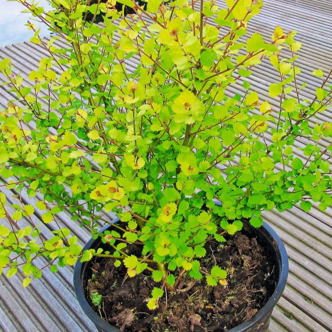 Изящный округлый куст, покрытый с мая по октябрь золотистыми листочками. Медленнорастущее растение, высотой до 1 м. Цветет в конце весны. Для посадки рекомендуется покупать культурный крупномер. Достоинства: - очень неприхотлива, не требует богатых питательными элементами почв; - полностью зимостойкая; - подходит для высадки в рокарий, скалистый сад, регулярный альпинарий с террасами; - и, наконец, она очень красива. Недостаток: - в густой тени растение угнетается и плохо развивается.
