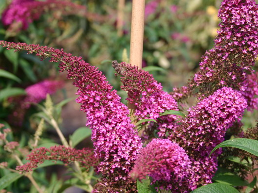 Кустарник, достигающий 2,5 м высоты. Цветки пахучие, собраны в длинные соцветия, окружаемые бабочками. Цветут от июля до октября.