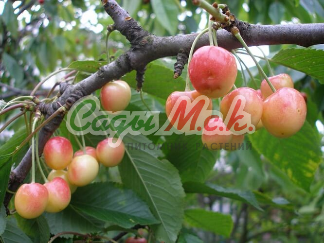 Саженцы черешни Розовый жемчуг отличаются простотой в эксплуатации и пользуются популярностью у садоводов-любителей. Дерево небольшой высоты, обладает свойством быстро расти. Плоды саженцев черешни Розовый жемчуг крупные с оранжево-розовым оттенком. Характер вкуса – сладкий. Достоинство представленного вида - сорт зимостойкий, засухоустойчивый, а так же легко переносит заболевания растений. Однако растение обладает низким уровнем транспортабельности, так как плоды очень нежные.