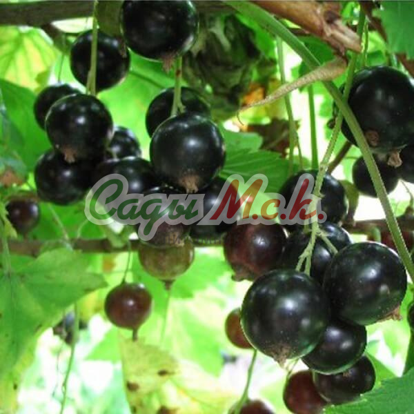 Куст среднерослый, хорошо разрастается, под тяжестью плодов ветви немного наклоняются.
