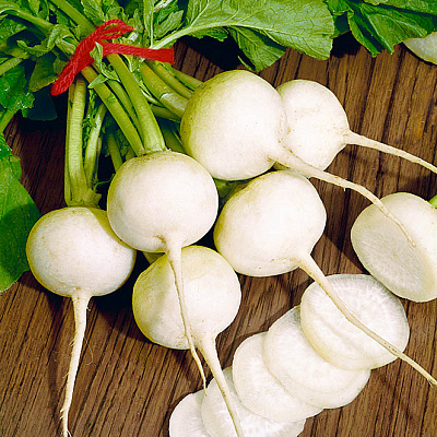 Дайкон Sasha - сорт раннего срока созревания. Созревает через 35-40 дней после всходов. Корнеплод белый, округло-овальной формы с острым корнем. Урожайность — до 4,5 кг/кв.м. Растение отличается высокой холодостойкостью.