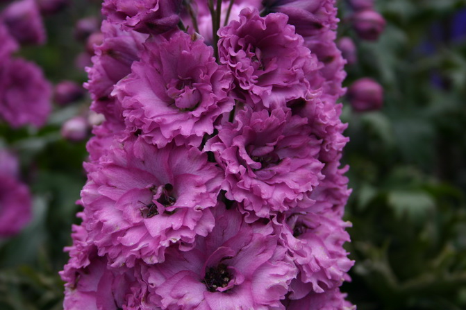 Дельфиниум высокий Мэджик Фаунтейн Пинк (Delphinium elatum Magic Fountain Pink) станет главным украшением клумбы, парка или сада. Это прямое растение с прочным стеблем достигает 120 см в высоту. Мэджик Фаунтейн Пинк — декоративный сорт, который можно выращивать в том числе для срезки — цветы отлично дополняют любые композиции и хорошо переносят транспортировку. Период цветения длительный, с июня по июль. На длинных стеблях появляются крупные (до 5 см в диаметре) цветы, собранные в густые пышные соцветия. Лепестки обрамлены легкой бархатной каймой, окрашены в разные оттенки розового цвета. После срезки могут вырастать новые цветущие стебли.