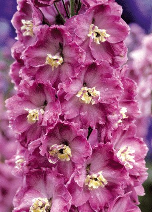 Дельфиниум Deep Sweethearts характеризуется отличной морозостойкостью, неприхотливостью в уходе и долгим цветением. Высота растения – 1,5-2,2 м. Соцветия – махровые, 80 см в длину, собраны в кисти, плотные, крупные, по 4-6 рядов лепесточков на одном. Размер каждого – до 9 см по диаметру. Цветки тёмно-розовые с белым центром.