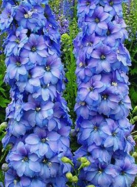 Дельфиниум Голубое Кружево - прямостоячий, морозостойкий многолетник. Цветки небесной окраски с контрастным белым глазком собраны в плотные, пирамидальные соцветия. Многочисленные прочные цветоносы образуют мощный куст высотой до 180 см. Нежно-голубое соцветие состоит из 70 отдельных крупных цветков. Радует своим обильным цветением длительное время.