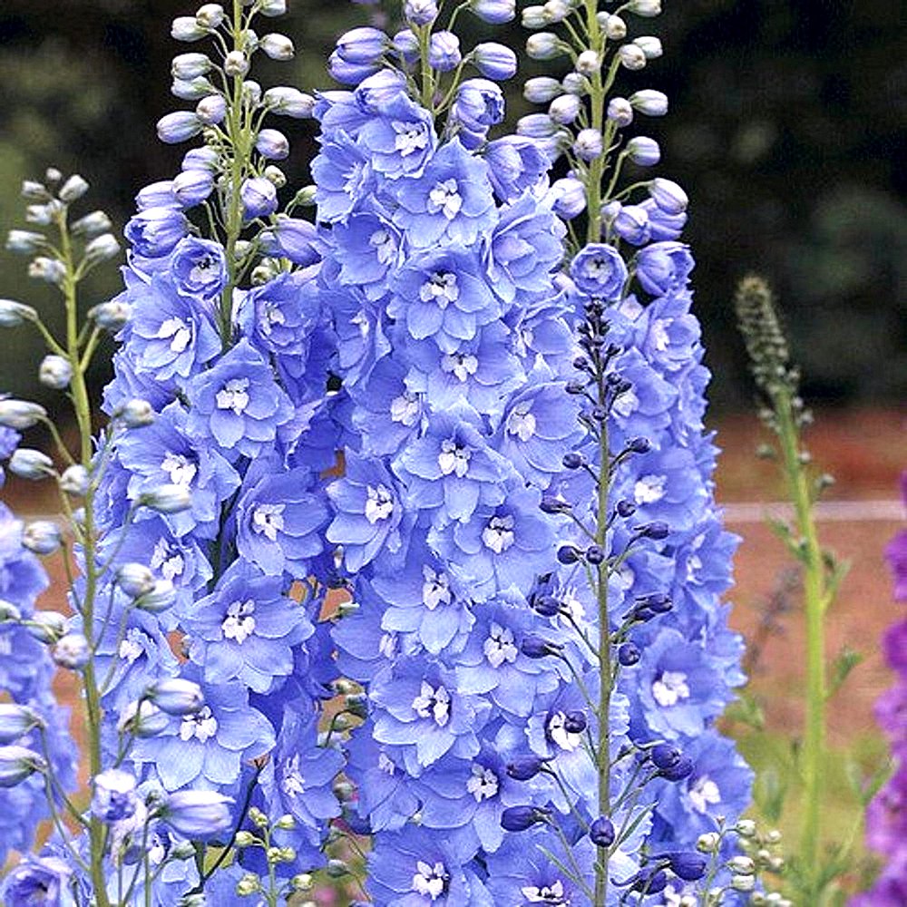 Многолетнее растение семейства Лютиковые, высотой до 2 м с плотными кистевидными соцветиями голубых с белым глазком цветков. Цветет в июне-июле, вторичное цветение - в августе-сентябре, отцветшие соцветия обрезают для полноценного второго цветения. Хорошо растет на освещенных участках с легким затенением в полуденные часы. Предпочитает плодородные суглинистые и супесчаные, умеренно влажные почвы. Семена высевают осенью в открытый грунт или в марте на рассаду, в мае растения высаживают на постоянное место с расстоянием 35-40 см. Используются в групповых и одиночных посадках, для получения срезки. В срезанном виде стоят в воде до 10-12 дней. Все части дельфиниума ядовиты.
