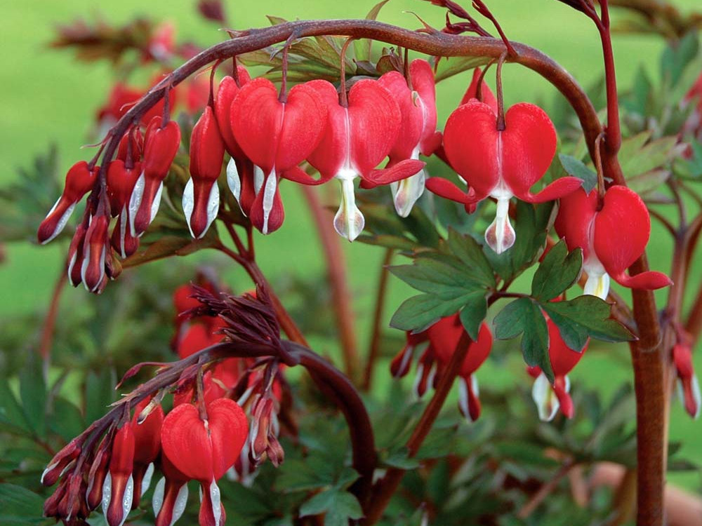 Дицентра великолепная Валентина (Dicentra Valentine) придется по вкусу любителям оригинальных форм и ярких расцветок. В конце весны на этом растении появляются небольшие цветки, собранные в соцветия, которые сохраняются до начала сентября. Внешне они напоминают сердце, лепестки имеют насыщенный малиново-розовый цвет с вкраплениями белого. Дицентру можно выращивать в открытом грунте. Она быстро адаптируется к погодным условиям и составу грунта, отличается высокой зимостойкостью. В умеренном климате цветок может зимовать без укрытия. Взрослое растение достигает 50 см в высоту и быстро разрастается. Особенно выгодно его посадки смотрятся в комбинации с другими декоративными растениями розовых или пастельных оттенков.