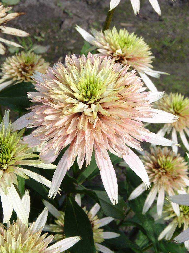 Эхинацея пурпурная Черри Флаф: Высота растения до 40 см. Бутоны зелёные, постепенно распускаясь цветки приобретают светло-розовый оттенок по краям, оставаясь зелёными в середине. Полностью распущенные цветки махровые, с плотным центром, светло-розовые. Светолюбива, но переносил полутень. Предпочитает питательные, хорошо обработанные, суховатые почвы. Подходят для миксбордеров. Эффектна в группе среди газона. Используется в букетах.