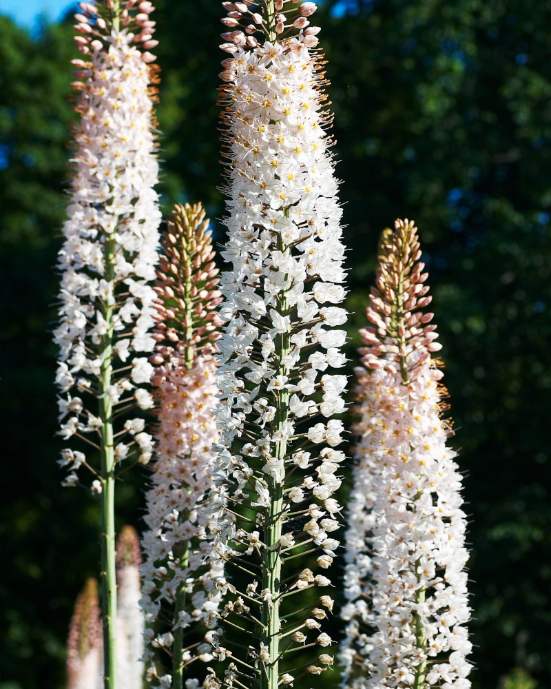 Эремурус Лайн Данс - загадочное растение с высокими соцветиями, напоминающими лисьи хвосты смотрятся в средней полосе как пришельцы из космоса. "Хвост" соткан из сотен остроконечных белых цветочков, постепенно раскрывающихся снизу вверх. Цветение длится несколько недель. Высокие хвосты с танцующими на ветру хончиками создают весьма интересные вертикальные направляющие и акценты, долго сохраняют свежесть в букете. Секреты варащивания эремурусов: возвышенное хорошо освещённое место посадки с хорошим дренажём, защита от сильного ветра и от излишней влаги осенью. В районах с малоснежными зимами корневище нужно замульчировать. Космос гораздо ближе, чем вы думаете!