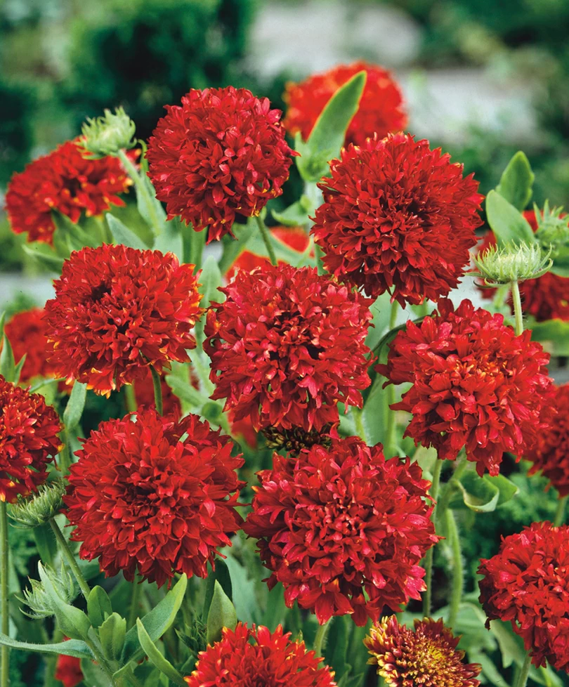 Компактный низкорослый кустик с многочисленными пышными махровыми крупными цветками багряно-винных оттенков. Легко переносит жару и засуху.