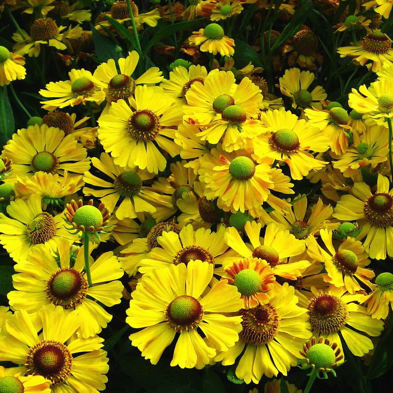 Гелениум осенний Зимбелштерн – многолетнее корневищное растение. Стебли прямые, ветвистые, до 160см высотой, крепкие, одревесневающие, облиственные. Листья некрупные, сидячие, с мелкозубчатым краем. Соцветия - корзинки 3-5см в диаметре, собраны в крупные верхушечные щитковидные соцветия до 30см в поперечнике. Цветки желтые. Цветет в июле-сентябре 60 дней.