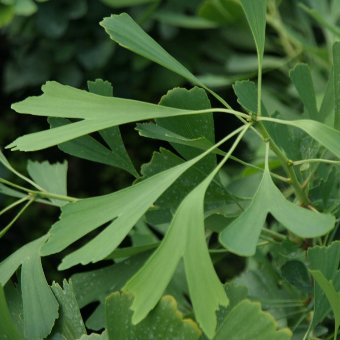 Гинкго билоба Saratoga - вертикальное лиственное дерево со светло-зелеными листьями. Две лопасти листа разделены глубоким вырезом, часто узкие, что придаёт  кружевной вид. Компактнее, чем вид. Размер 2,1 х 1,2 м в 10 лет.