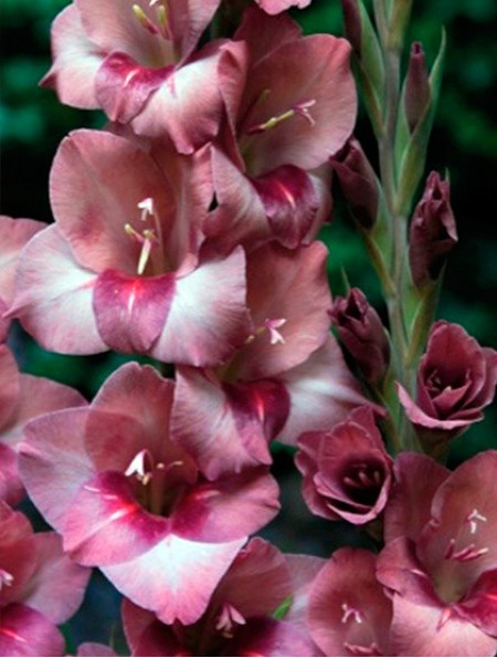 Гладиолус Bastia (Бастия) – отличается необычно красивой благородной окраской – пепельно-розовой, такой цвет называют «пепельная роза». Гладиолусы серии Бамбино – отлично держат цветонос с пышным соцветием, поэтому редко нуждаются в подвязке.