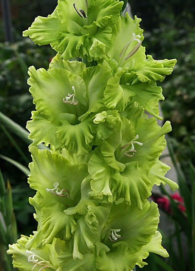 Гладиолус (Шпажник) Зеленый малахит - цветы темно-зеленые, нижние лепестки несколько темнее.