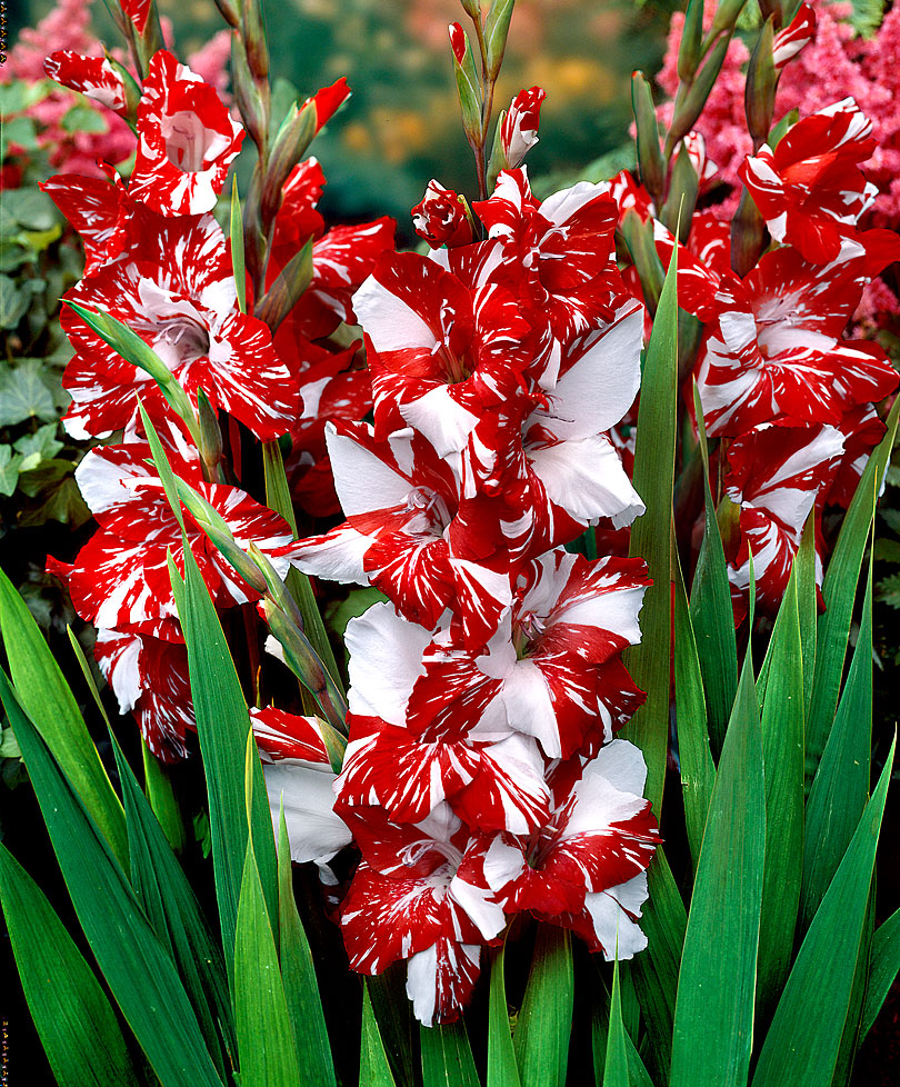 Гладиолус Zizanie (Зизани) - экзотический красавец, покоривший сердца многих цветоводов. Вырастает до 100-120 см. Цветки двухцветные, до 15 см в диаметре, формируют широкое соцветие.