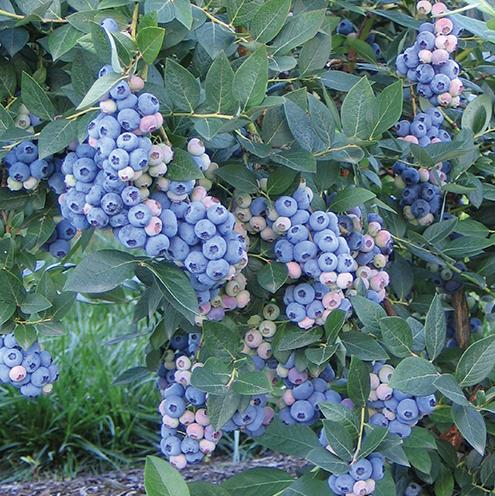 Саженцы голубики Aurora - поздняя по срокам созревания голубика представляет собой крупные кусты, занимающие площадь до 1,3 метров, растущие до высоты 1,5 м. Саженцы опыляются внутри одного сорта, но при наличии других опылителей урожайность резко возрастает. Сорт устойчив к морозам. Используются в консервировании.