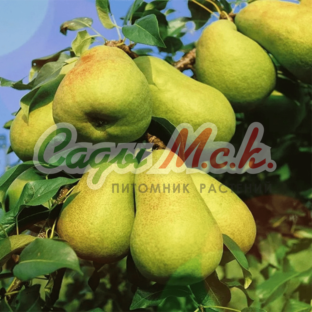 Саженцы груши домашней Бере русская – сорт зимних сроков созревания. Отличается высокой урожайностью. Плоды созревают в середине сентября, потребление можно растянуть с октября до второй декады декабря.  Плоды крупные. Окраска груш золотисто-желтая, с темно-красными размытыми пятнами и незначительной оржавленностью. Кожица шероховатая. Мякоть светло-кремовая. Вкус отличный, сладкий, десертный.