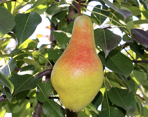 Груша Яковлевская - дерево среднерослое, с пирамидальной кроной средней густоты. Плоды удлиненно-грушевидные, гладкие, правильной формы. Кожица средняя, маслянистая, с восковым налетом. Окраска основная зеленовато-желтая, покровная красная. Мякоть кремовая, средней плотности, нежная, полумаслянистая, сочная с незначительным количеством грануляций, вкус сладкий. В пору плодоношения деревья вступают на 3-4-й год. Урожайность высокая. Съемная зрелость наступает во второй декаде сентября. Сорт характеризуется высокой зимостойкостью. Обладает устойчивостью к парше и энтомоспориозу.