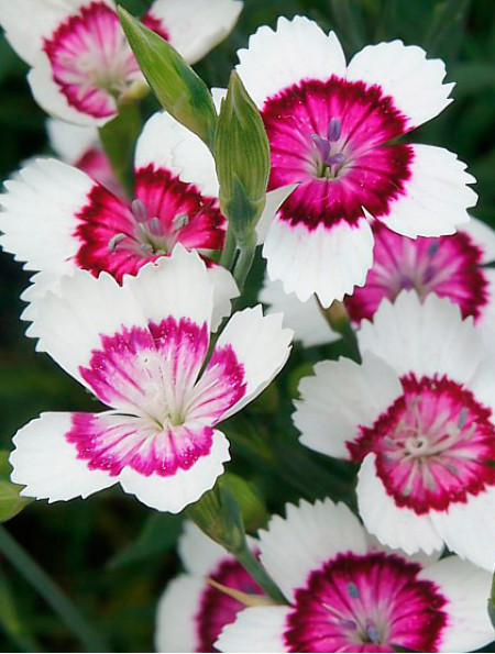 Гвоздика травянка Arctic Fire – многолетний разрастающийся сорт, образующий рыхлые дерники. Цветет белыми с красным, малиновым кольцом цветами до 2,5 см в диаметре. Лепестки цветов имеют зубчатый край. Высота куста доходит до 20 см.