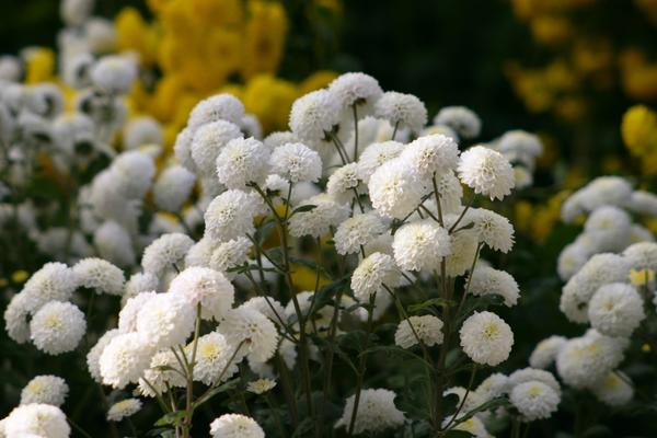 Хризантема Snow Elf- соцветия чисто-белые, густомахровые, помпонные, диаметром 5-7 см. Высота растений 50-70 см. Срок цветения - сентябрь - октябрь.
