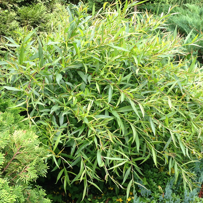 Ива Шаровидный карлик отличается небольшими размерами и шаровидной, слегка плакучей формой кроны. Дерево высотой до 1,5 метров со стволом, толщиной 8,5 см и шаровидной кроной до 1,2 метров в диаметре. Взрослые растения слегка плакучие. Двулетние побеги тонкие, желтоватобурые, частично опушенные. Однолетние побеги короткие, тонкие, красноватые в основании. Листья мелкие, 5-6 см длиной и 0.6 — 1 см шириной, ланцетные, заостренные к верхушке, слабо опушенные с обеих сторон, железисто-пильчатые по краю. Зимостойкость высокая. Светолюбива.