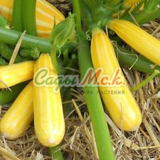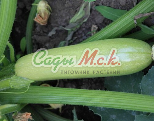 Среднеспелый (45-55 дней от всходов до плодоношения) холодостойкий сорт. Выращивается как рассадным способом, так и прямым посевом в грунт. Посев на рассаду - в апреле, высадка рассады в грунт - в мае – июне. Посев непосредственно в грунт в конце мая – июне. Хорошо отзывается на внесение органических удобрений. Растение кустовое и полукустовое. Плод цилиндрический, со сбегом к плодоножке, массой 1,1-1,5 кг, длиной 21-28 см, с гладкой поверхностью, бледно-зеленый с прерывистыми темно-зелеными полосами. Кора тонкая, мякоть белая, плотная, нежная. Молодые завязи (10-15 см) используют вместо огурцов в салатах. Крупные плоды (1 кг и более), собранные до заморозков и ночных холодов, могут храниться в жилой комнате до июня-июля (на свету при температуре не ниже 12°C). Схема посадки 60x60 см. Товарная урожайность 20,3-24,8 кг/м2.