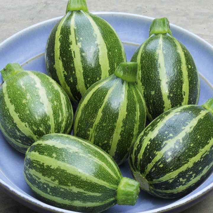Кабачок Zucchini Piccolo - сорт неприхотливый, урожайный. Высота растения - 60-90 см. Период созревания - 50-60 дней. Листья крупные, зеленые, декоративные. Цветки крупные, золотисто-желтые. Плоды темно-зеленые с легкими светло-зелеными полосами, округлые, небольшого размера, продолговато-цилиндрические, мясистые, очень вкусные.