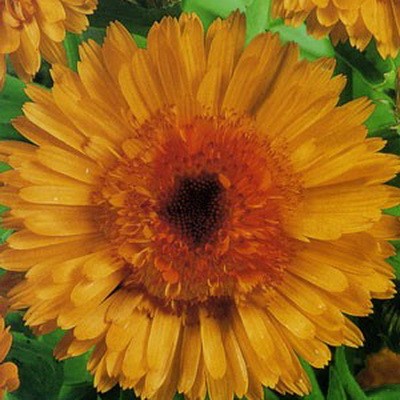 Прекрасная календула с анемоновидной формой соцветий. Относится к группе Каблуна. Ее темно-оранжевые соцветия имеют ярко выраженный фруктовый аромат. Нарядные шапочки соцветий Ø8-10 см с характерным хохолком центральных трубчатых цветков выглядят гораздо привлекательней, чем стандартные простые или махровые корзинки. Кусты густоветвистые, высотой 50-60 см. Растения холодостойкие – выдерживают кратковременные заморозки до -5°С. Цветут с июня по сентябрь. Рекомендуются для оформления цветников и контейнеров.