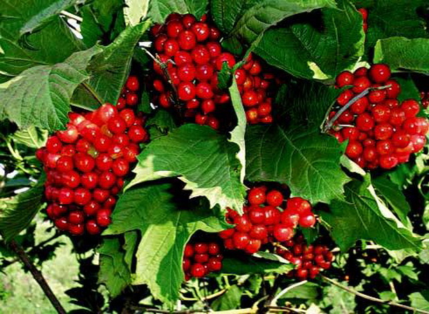 Саженцы калины садовой Красная Гроздь принадлежат к урожайным сортам. Куст средний с компактной кроной, побеги средние, светло-зеленого оттенка, без опушения, листья лопастные. Плод средний, массой 0,7 г, шаровидной формы, пунцово-красный, имеет мелкие семена, плодоножка средняя, тонкая. Мякоть сочная, содержит большое количество витаминов С и Р. Сорт калины садовой Красная Гроздь характеризуется частичной самоплодностью, зимостойкостью, созревает в средний период. Размножение происходит черенками и отводками. Преимущества: растение принадлежит к универсальным сортам.