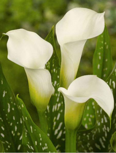 Клубни до 14 см в обхвате!!! Калла Альбомакулата - многолетний, крупноцветковый сорт. Высота растения 50 сантиметров. Цветок крупного размера, в форме свечи, белого цвета с легким ароматом ванили. Для посадки выбирают полутенистые места с ярким рассеянным светом, почва слабокислая. Каллы влаголюбивы, отлично растут у воды и различных искусственных водоемов. В апреле клубень необходимо разбудить, высадив его в контейнер с землей, когда угроза заморозков пройдет, можно высадить в открытый грунт. Перед заморозками клубни выкапывают, промывают и убирают в сухую тёмную кладовку, через 1,5 недели нужно обрезать корни и листья, убрать на хранение при температуре +3°С +5°С. Хранят клубни до высадки в холодильнике в ящике для овощей, предварительно завернув в салфетку, не допуская их пересыхания. В период покоя растение сбрасывает листья.