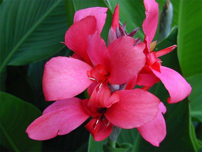 Канна карликовая Перкео - многолетнее, травянистое растение с клубневидными корневищами. Высота растения 40-50 см. Стебли прямостоячие, неветвящиеся. Листья крупные, эллиптические или овально-продолговатые, заостренные, зеленые. Цветки ярко-розовые. Канны предпочитают солнечные места, защищенные от холодных ветров. Эффектны при посадках в большие группы, для засадки середины клумб и одиночных посадок, а также для внутреннего озеленения в качестве горшечных и кадочных растений.