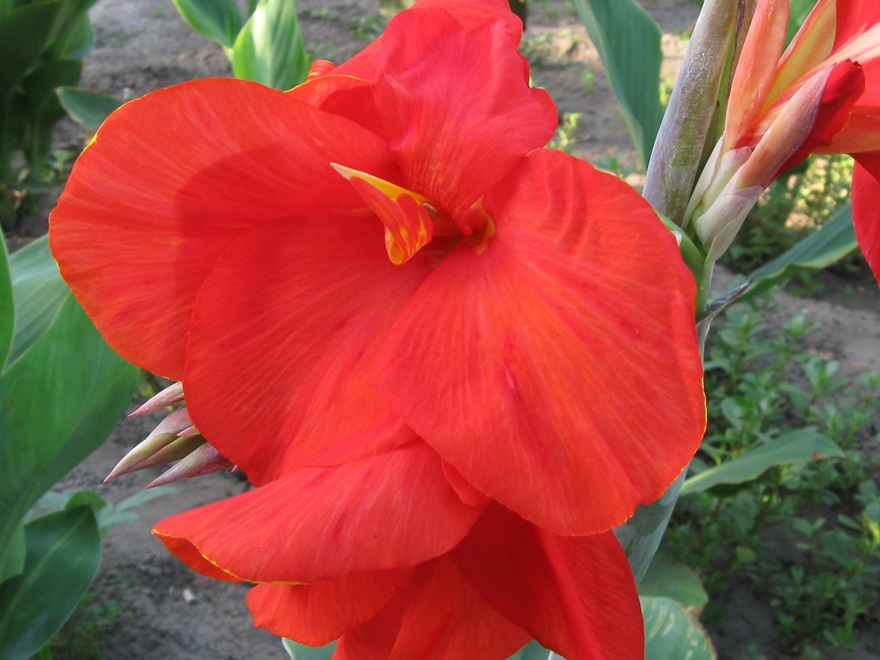 Канна President обладает очень крупными цветами, рано появляющимися, огненно-шарлахово-красные. Высота - 120 см.