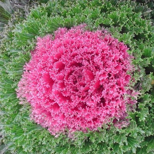 Гибридная форма с привлекательными розетками листьев. Растение высотой 15-25 см и диаметром 30 см. Розетка двуцветная - красно-зелёная. Листья яркоокрашенные бахромчатые по краю. Цвет становится более интенсивным в тёплых условиях. Используется для бордюров, посадок группами.Агротехника. Растение холодостойкое, легко переносит заморозки, предпочитает хорошо дренированные почвы и солнечное место. Размножают посевом семян в конце марта – начале апреля в рассадные ящики. Глубина заделки семян 0,5 см. При температуре почвы +20°C всходы появляются через 4-7 дней. Сеянцы пикируют в фазе 1-й пары настоящих листьев, в мае рассаду высаживают в открытый грунт. Расстояние между растениями при высадке 30-45 см. Расстояние между растениями при высадке 30-45 см.