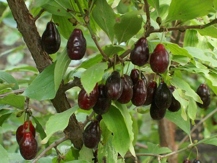 Спрос на саженцы кизила Семен сегодня большой. Сорт кизила крупноплодный с широкогрушевидными, немного ребристыми плодами. В среднем масса плода составляет 6,0-7,0 г, ширина 18,0 мм, длина 28,0 мм. Окраска зрелых плодов темно-вишневая, кожица прочная, блестящая. Мякоть хрящевидная, плотная, легко отделяется от косточки, с приятным ароматом. Косточка составляет порядка 11,0 % от массы плода. Крупномер Семен вырастает до 4-х метров в высоту, созревает до 5-10 сентября. Прочность крепления плодов хорошая. Плодоношение ежегодное, урожай с 10-летнего дерева - 30-35 кг.