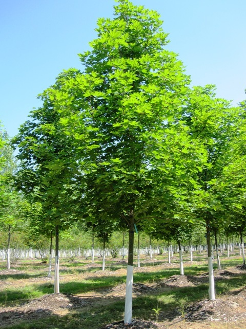 Саженцы клена остролистного Emerald Queen прекрасно подходят для ландшафтного дизайна парков, садов и придомовых территорий. Молодые растения при хорошем уходе быстро вырастают в красивые деревья высотой от 8 до 10 метров.«Дерево-светофор»: окраска листвы изменяется от красноватых при распускании, темно-зеленых летом до светло-желтых либо желто-зеленых осенью.Цветение начинается в середине весны с появления желто-зеленых цветков, собранных в соцветия-щитки.Плод – крылатка длиной от 3 до 5 см.Устойчив к ветру и засушливым периодам.
