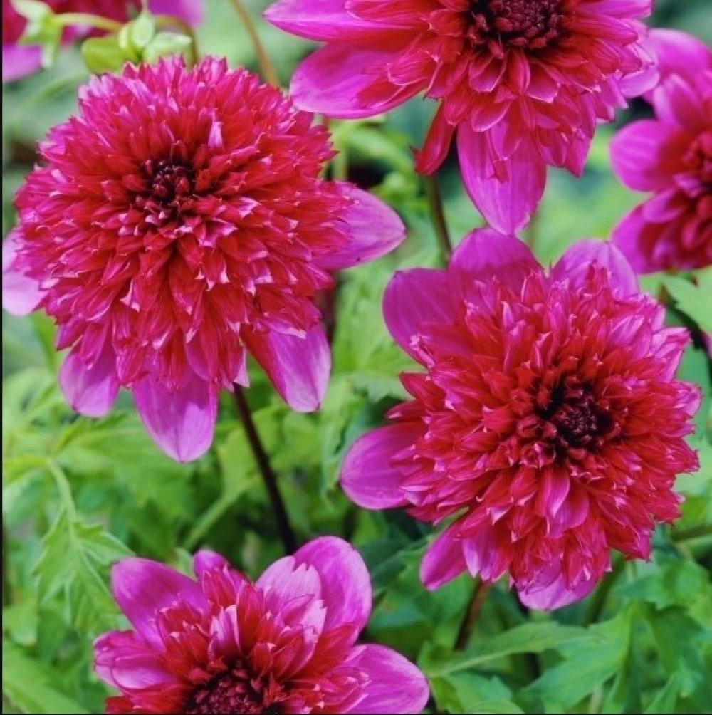 Клубни георгины анемоновидной Ричардс Форчун в период цветения станут одним из самых эффектных растений в любом саду. Высокий (до 100 сантиметров) куст покрывают цветки с рыхлым махровым центром бордового цвета, который обрамляет ярко-пурпурная «юбочка» из крупных, слегка завернутых к центру лепестков. Свое название георгина получила за схожесть цветков с махровыми анемонами. Цветение будет более продолжительным, если предоставить Георгине анемоновидной Ричардс Форчун солнечное, защищенное от сильного ветра места с жирной, богатой перегноем почвой. Цветки используются для одиночной посадки, отлично смотрятся в смешанных клумбах.