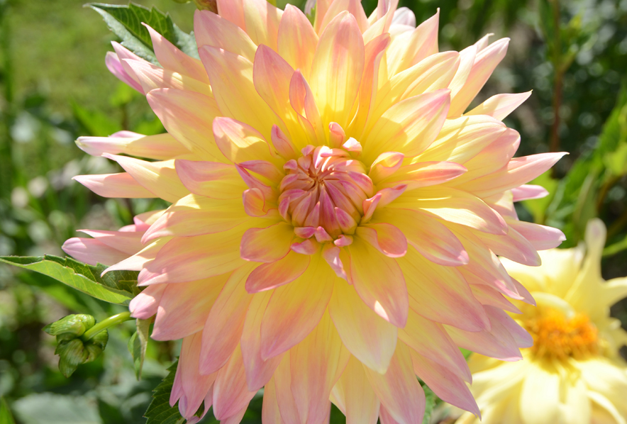 Клубни Георгины Полукактусовой Кабана Банана (Dahlia Cabana Banana) помогут красиво и благородно оформить придомовые зоны на период цветения с июля по октябрь. Кустообразное растение (до 90 сантиметров в высоту) обладает обилием ветвей и оригинальными перистыми листьями. Объемные соцветия-корзинки (до 15 сантиметров в диаметре) состоят из лепестков, скрученных в трубочки. Форма цветков махровая, окраска – нежно-желтая со светло-розовыми переходами на кончиках лепестков. Георгина полукактусовая Кабана Банана предпочитает солнечные места, защищенные от ветра, полив и удобренную почву. На зимний период луковицы выкапывают для хранения.