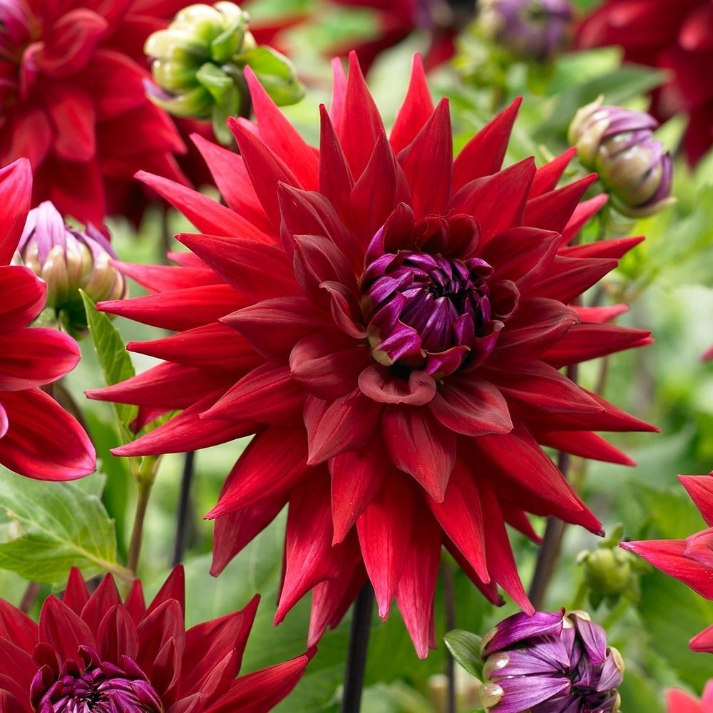 Клубни Георгины Полукактусовой Уиттеманз Бест (Dahlia Semi-Cactus Witteman's Best) часто выбирают для оформления цветников в групповых или в моно композициях. Сорт отлично смотрится в вазах в срезанном виде. Ветвистое растение на солнечных местах и при хорошем уходе (регулярном поливе и подкормке) вырастает до 120 сантиметров. Георгина обладает оригинальными перистыми листьями и соцветиями из многочисленных лепестков свернутых в трубочки. Форма цветов махровая, диаметр каждого достигает 15 сантиметров в диаметре. Георгина полукактусовая Уиттеманз Бест имеет насыщенно-красный оттенок. Пышное убранство сада буде благоухать с июля по октябрь. После окончания цветения клубни выкапывают, сушат и убирают на зимнее хранение.
