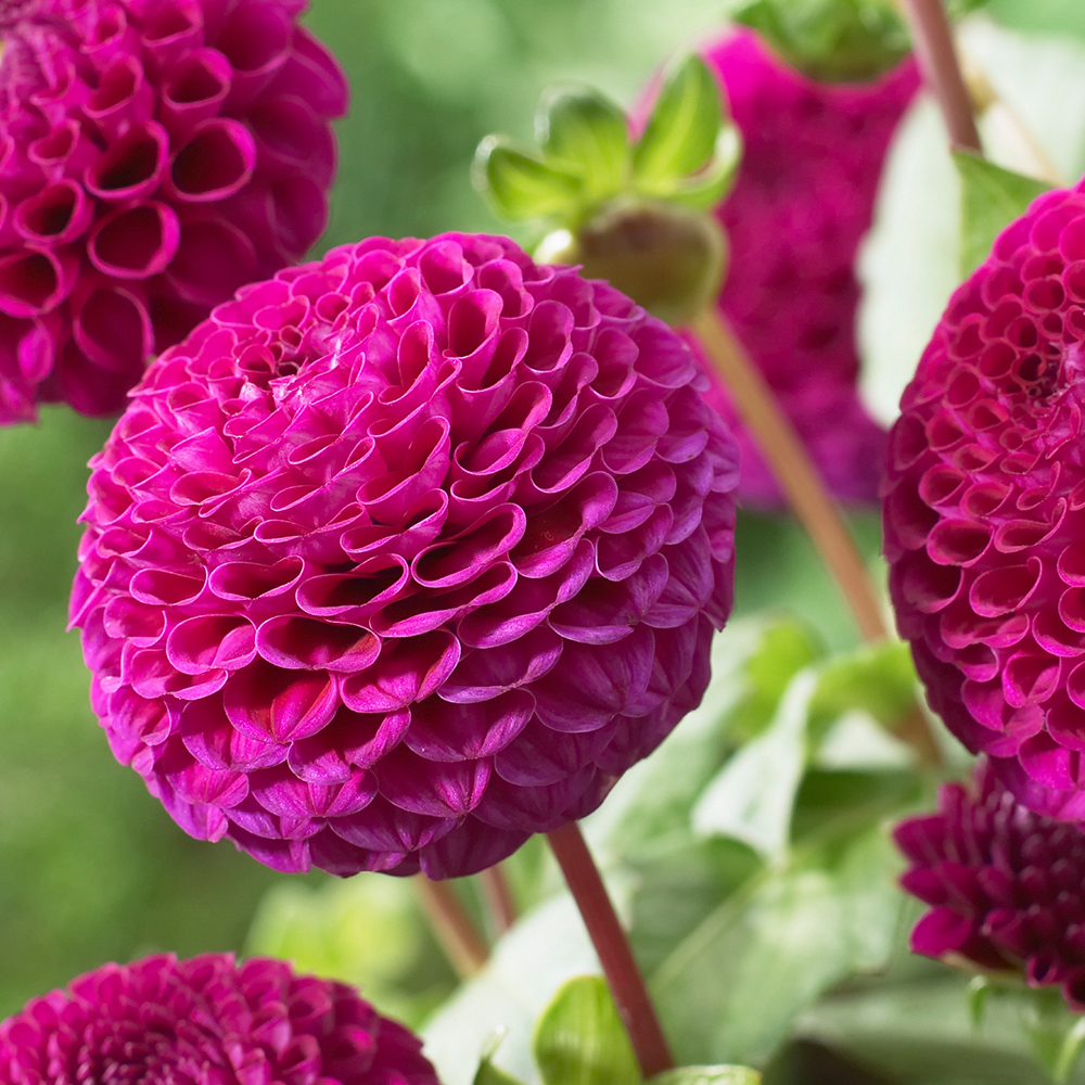 Георгина помпонная Рокко - соцветия плотные шаровидные пурпурной окраски. Куст высотой до 90-100 см. Цветение наблюдается с июля по октябрь. Георгина помпонная Рокко в грунте не зимует, поэтому перед наступлением устойчивых холодов клубни выкапывают, хранят в емкостях, засыпанных торфом или песком в прохладном месте.