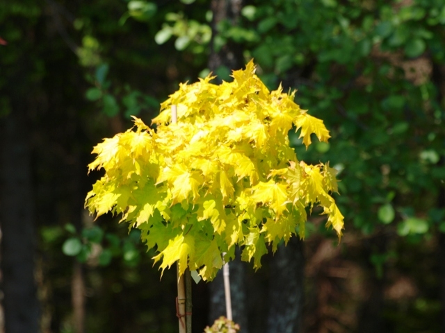 Клен Golden Globe - дерево высотой 4-6 м, крона округлая и составляет в диаметре до 5 м. листья пяти-лопастные, при распускании светло-зеленые, летом желтовато-зеленые, осенью желтые. Представлен в основном в виде штамбового дерева. Медленно растущий, светолюбив, предпочитает плодородные почвы.