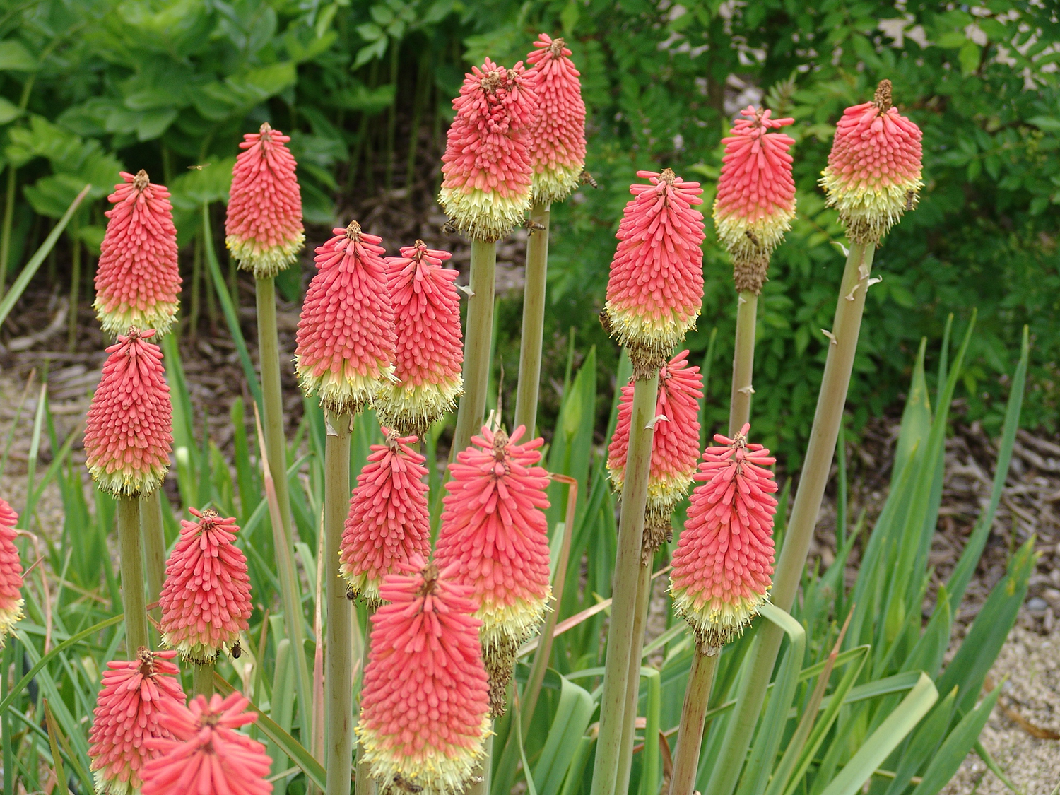 Книфоффия Фест Санрайз: Листья мечевидные, плотные, кожистые, собраны в прикорневую густую розетку. Высота взрослого растения 60-90 см, ширина куста до 45 см.