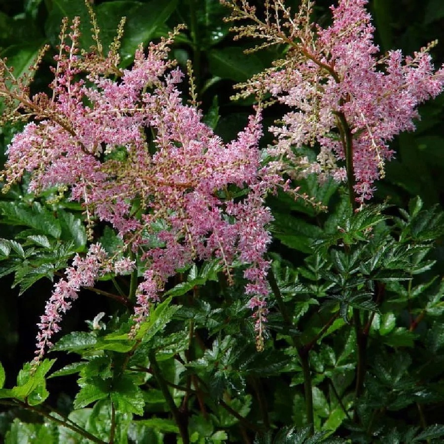 Астильба Арендса Фламинго (Astilbe arendsii Flamingo) украсит ваш сад в июле-августе изящными розовыми метельчатыми соцветиями. Невысокие раскидистые кусты цветут до 15-20 дней и прекрасно выглядят в одиночных посадках и декоративных ландшафтных композициях. Они вырастают до 70 см в высоту и имеют диаметр 80 см. Пушистые розовые соцветия живописно смотрятся на фоне темной зелени. Они служат ярким украшением садовых участков и используются для оформления букетов. Астильба Арендса Фламинго хорошо переносит морозы в средней полосе, однако в бесснежные зимы кусты лучше укрыть.